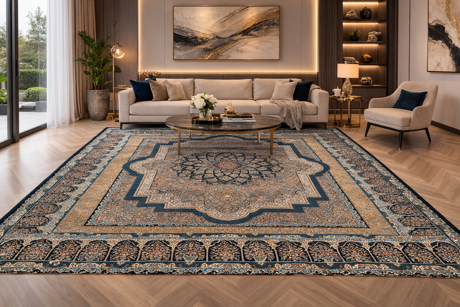 This elegant Persian-style rug combines traditional design with modern durability. Made from high-quality polypropylene fibers, it offers a soft texture while remaining strong and long-lasting. The detailed Persian-inspired patterns and rich colors add warmth and sophistication to any room.