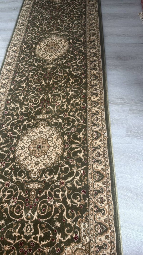 Bring timeless elegance to your home with the Emerald Medallion Runner, a beautifully detailed hallway rug inspired by classic Persian design. Featuring an elegant green field with intricate ivory floral motifs and repeating central medallions, this runner creates a refined and welcoming look in any hallway or narrow space. The medallion layout is a hallmark of traditional Persian carpet artistry, designed to act as the visual focal point and enhance the overall symmetry of the rug.